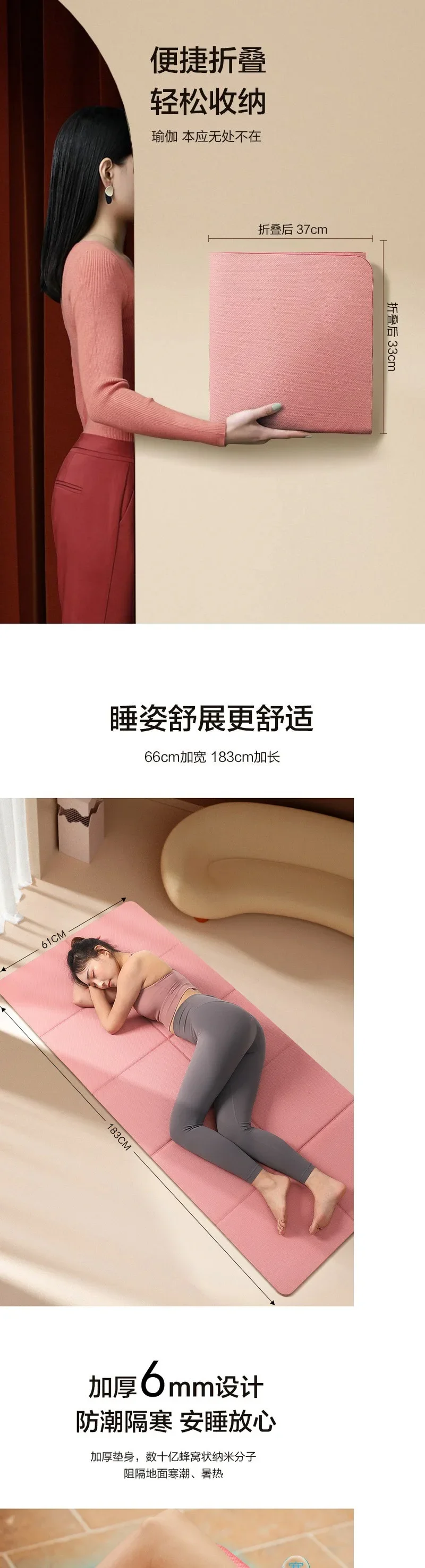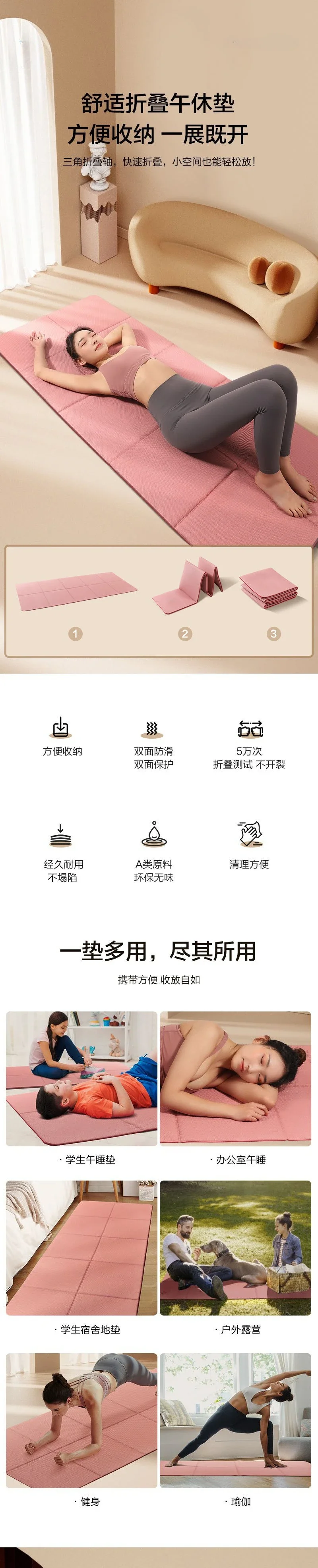 1. O tapete de ioga dobrável tem vincos para facilitar a dobragem passo a passo. Embalagem
