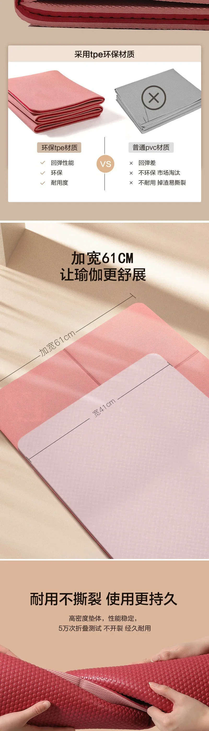 Tapete de ioga dobrável Aliexpress Collection, ecológico, TPE, dobrável, para viagem, exercícios de fitness, dupla face, antiderrapante para ioga